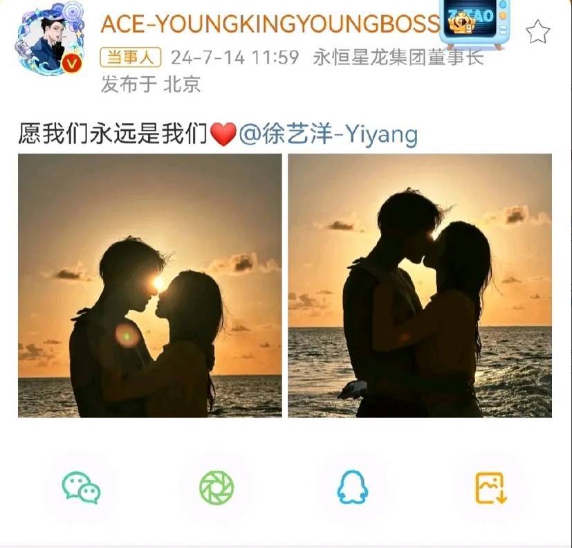 不过比起粉丝的破防,更多路人倒是乐见其成。毕竟在贵圈真假恋情满天飞的当下,黄子韬敢直接晒出拥吻照,还特意选在徐艺洋生日当天官宣,这份坦荡确实难得。更有意思的是,两人工作室第二天就放出了婚纱照花絮,徐艺洋穿着鱼尾裙笑出小梨涡,黄子韬居然在镜头前紧张到同手同脚。有网友调侃“拽王也有今天”,但更多人在评论里刷起“锁死”,毕竟能把“老板和员工”的剧本写成“从校服到婚纱”,这对的糖确实值得细磕。现在徐艺洋的新剧《御妖厨娘》刚开播,黄子韬就带着整个公司去包场支持,连剧组奶茶都是他亲自点的。这种把“公开处刑”变成“公费恋爱”的操作,难怪连路人都忍不住说“磕到了”。或许爱情本就该这样,不用藏着掖着,大大方方地告诉全世界——你看,我找到了要共度余生的人。